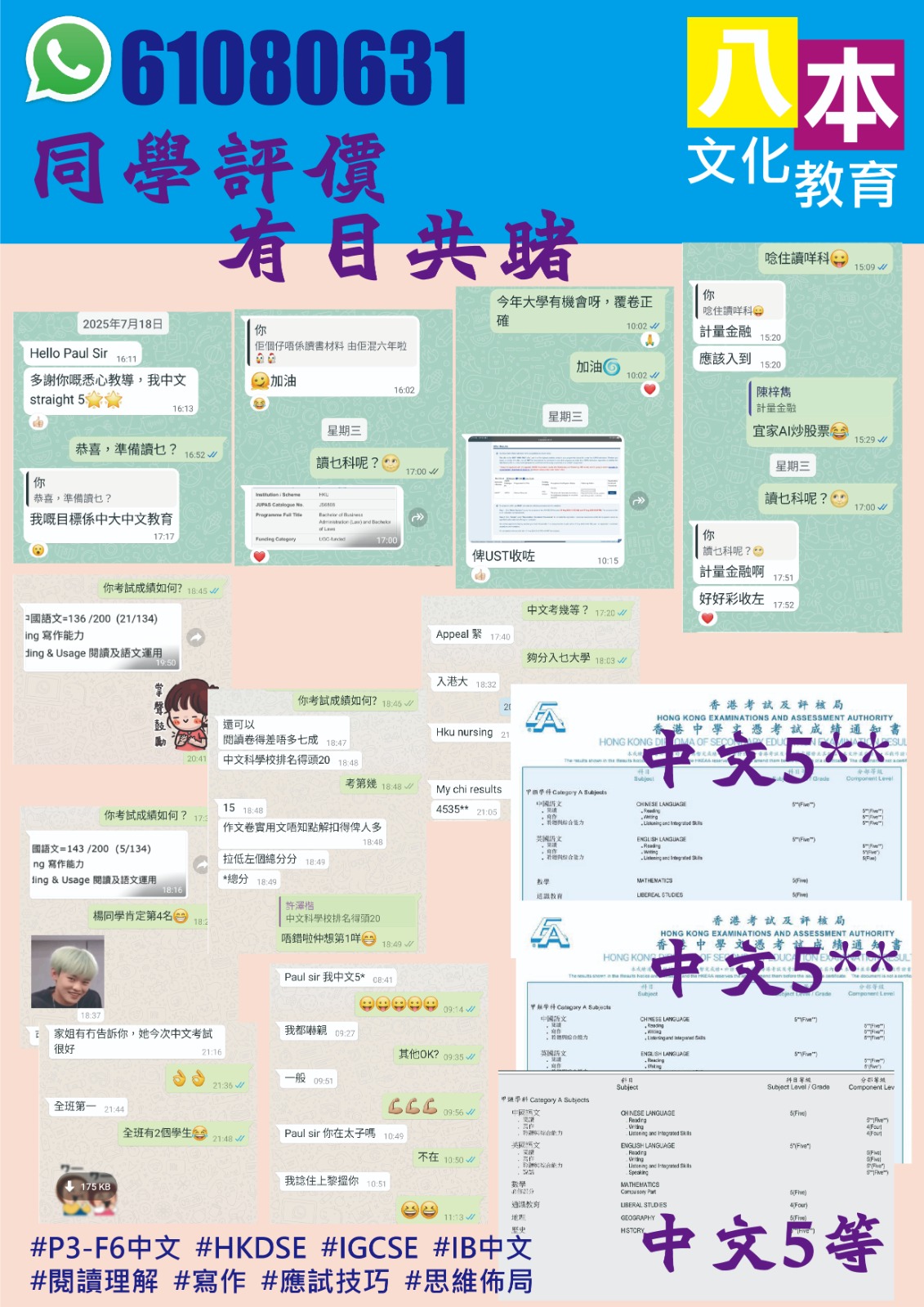 每逢放榜,我總會收到學生傳來的訊息。今年七月,一位學生在傍晚時分傳來簡短的話:「多謝你這幾年教導,我中文 straight 5⭐。」讀畢,心中一暖,默然許久。這些年來,教學路上風雨不絕,然則每當見證學…